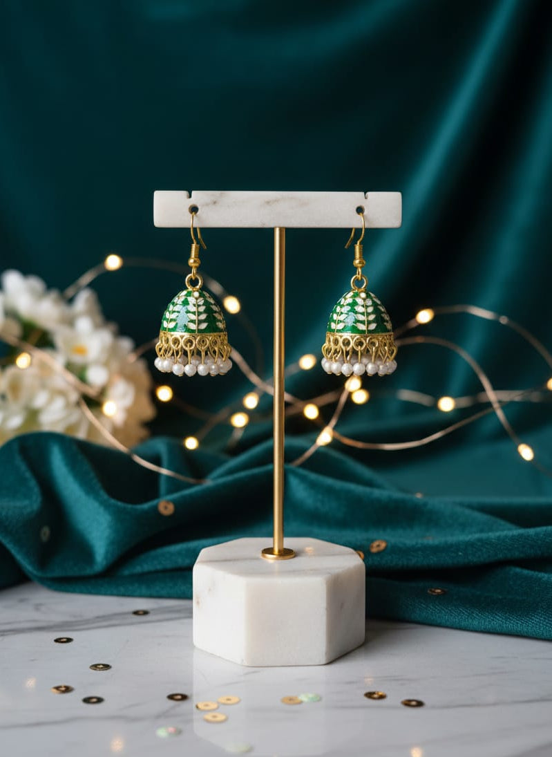A vibrant fusion piece combining a traditional jhumka with a bold hoop silhouette.